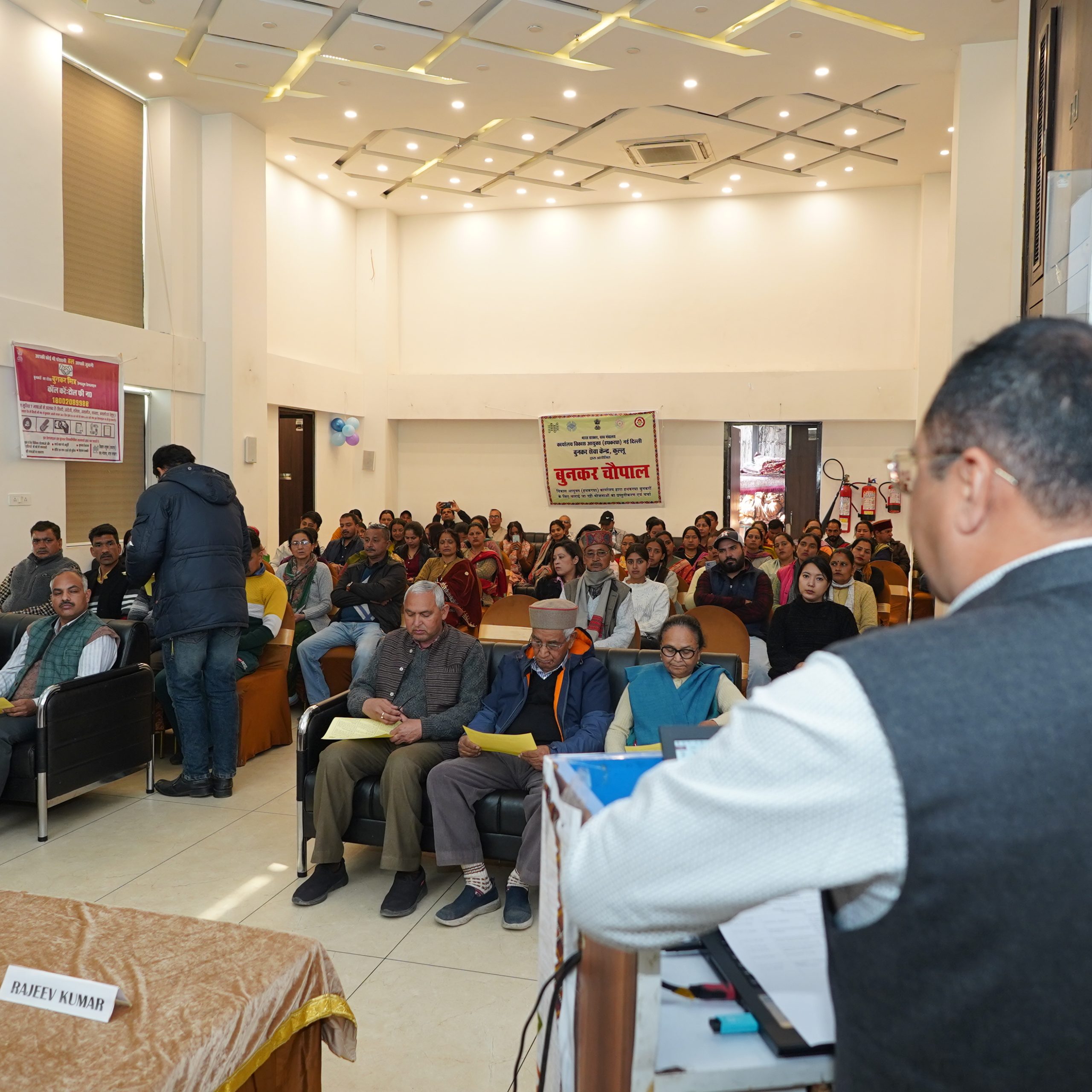 टेक्सटाइल्स कमेटी के श्री राजीव कुमार ने देश में IHB को बढ़ावा देने हेतु विभिन्न एजेंसियों द्वारा किए जा रहे प्रयासों पर प्रकाश डाला। वहीं भुट्टिको के अध्यक्ष श्री सत्य प्रकाश ठाकुर ने कुल्लू शॉल की उत्पत्ति पर जानकारी देते हुए वस्त्र समिति के कार्यों की सराहना की और बुनकरों से IHB योजना का लाभ उठाने का आग्रह किया। बुनकर सेवा केंद्र कुल्लू के सहायक निदेशक श्री विनय कुमार ने बुनकरों का उत्साहवर्धन करते हुए IHB की मानक संचालन प्रक्रिया (SOP) तथा भारत सरकार की विभिन्न योजनाओं की जानकारी दी। जिला उद्योग केंद्र कुल्लू की प्रबंधक श्रीमती प्रवीण लता ने राज्य सरकार की योजनाओं पर प्रकाश डाला। तकनीकी सत्र में ऑनलाइन पंजीकरण की प्रक्रिया भी विस्तार से समझाई गई। कार्यक्रम के अंत में टेक्सटाइल डिजाइनर श्री किरण कुमार हांसदा ने सभी अतिथियों का धन्यवाद ज्ञापित किया। Report By Shweta